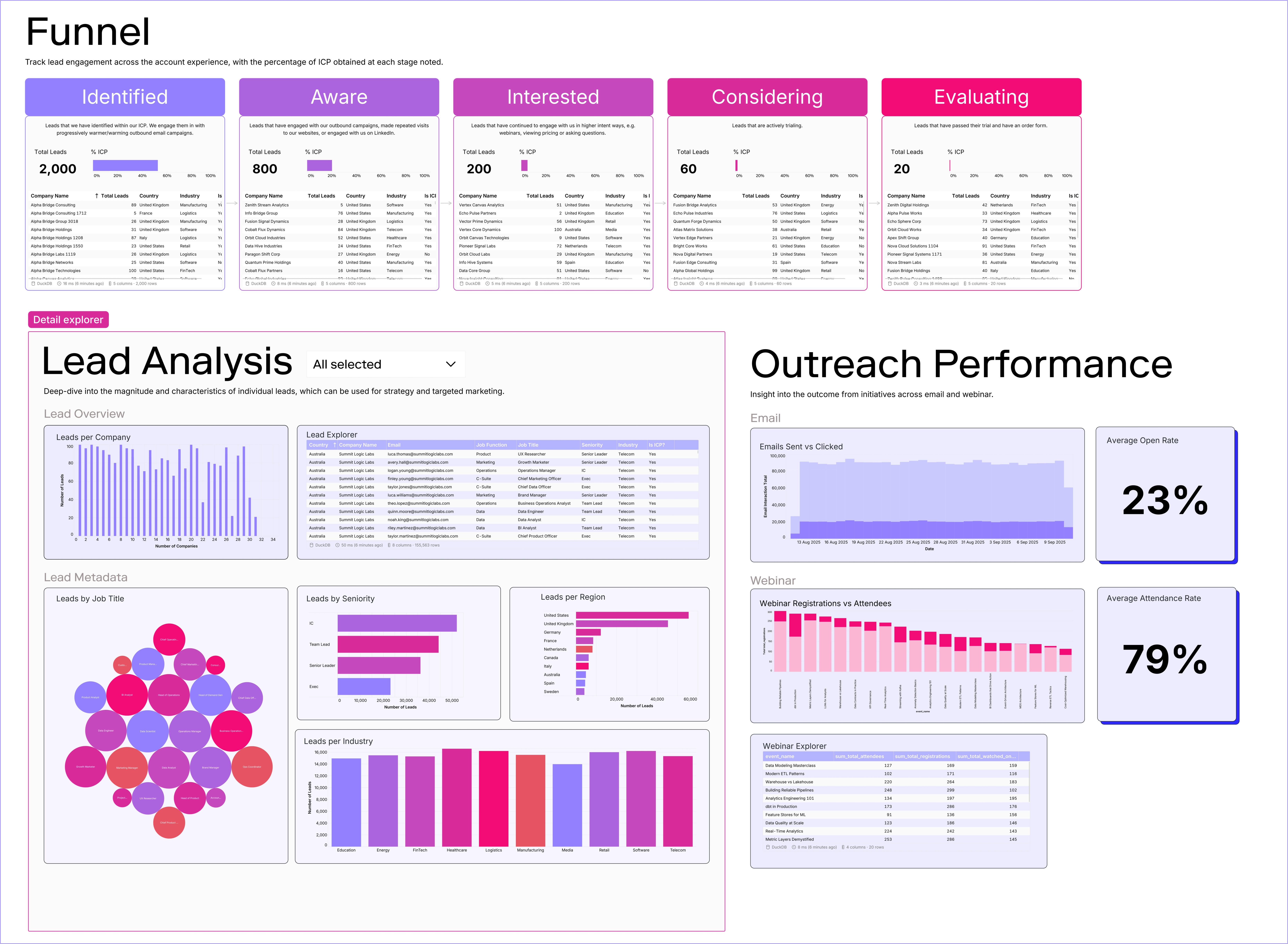 One view. Singular visibility. Actual account progression instead of scattered lead metrics.