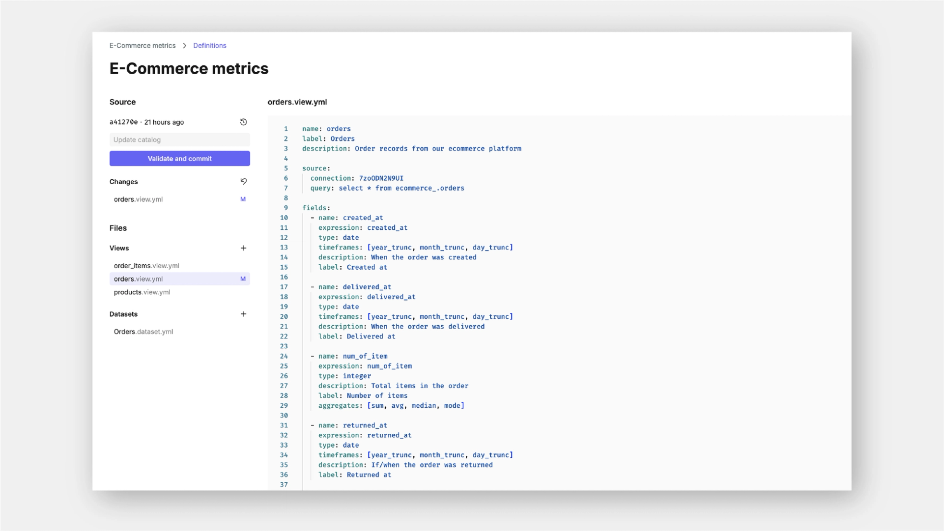 Like all semantic layers, Count Metrics is a collection of defined metrics, views, and datasets, presented together as a catalog.