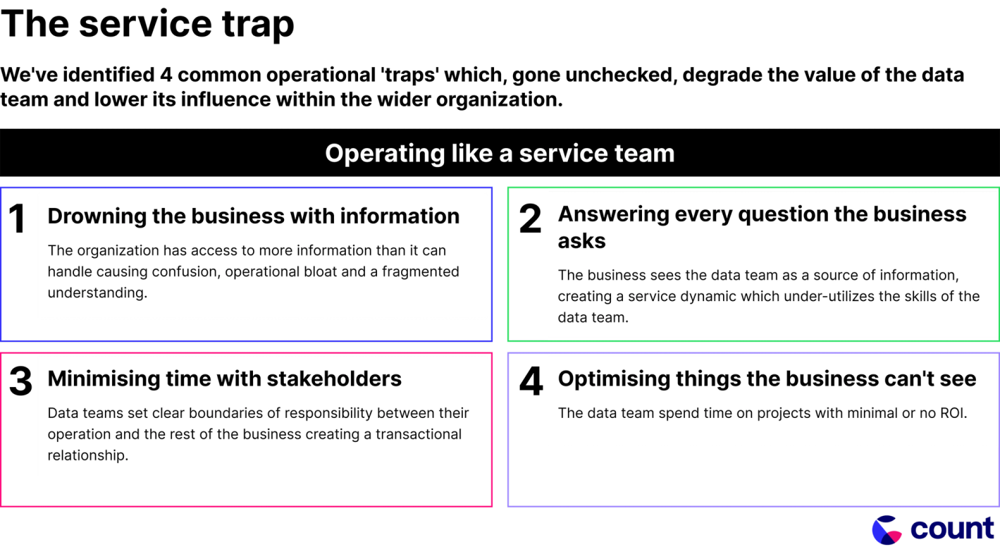 I also noticed common traps data teams find themselves in that prevent them from being as valuable as they could: