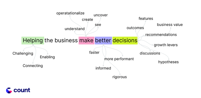 In data, though, it feels like we’re still trying to figure out our role. Yes, we’d all say our goal is to improve “decision-making within the business” but this feels so high-level and abstract as to be useless and leaves the role of the data team open to interpretation both by us and the wider organizations we work with.