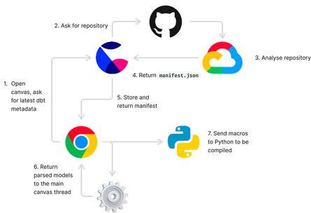 Let's take a technical deep-dive into how we implemented our dbt Core integration under these constraints, leveraging our previous work onPythonandJinjasupport in the canvas.