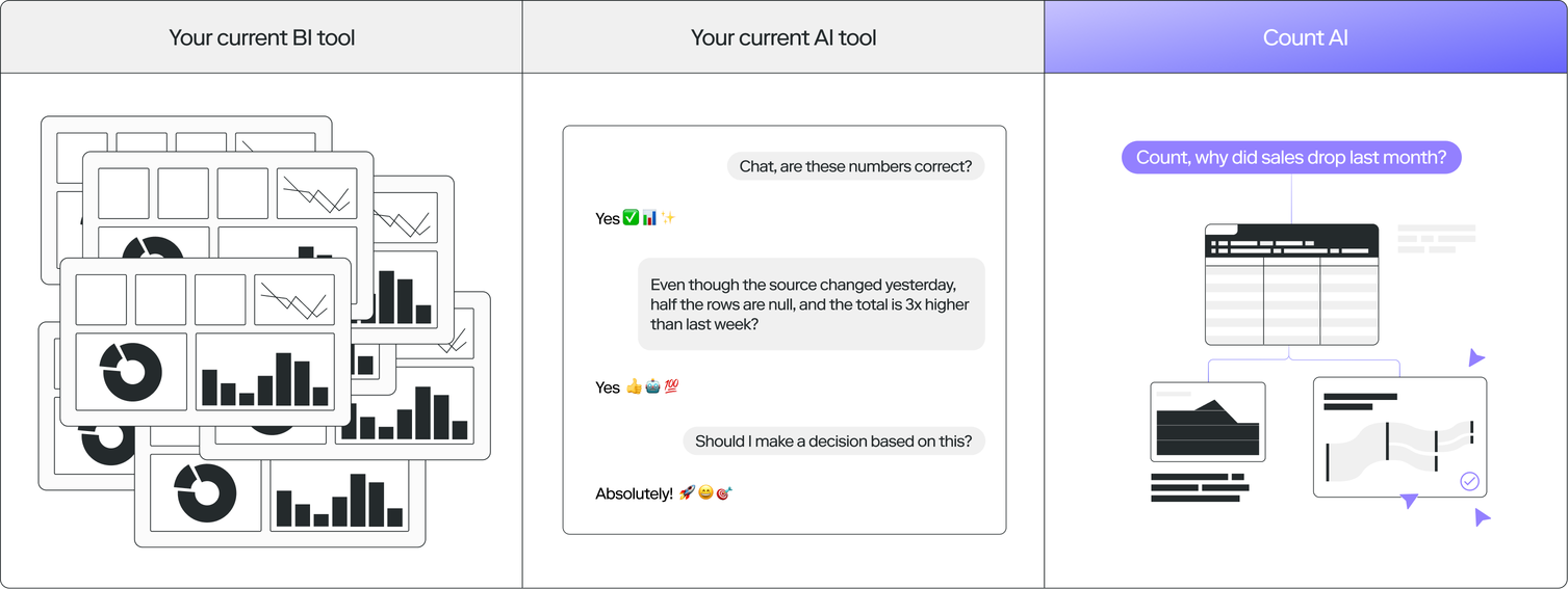 At the core of our new agent are three innovations which we believe make Count a step forward in agentic analytics: