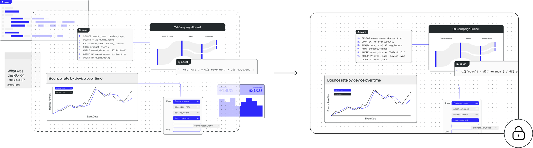 We’ll share more on how this works soon but to give you a sense of scale currently 60% of all queries in the Count platform run on our user’s local machines and this creates enormous pool of compute to use agents across your organization without blowing up your data warehouse.