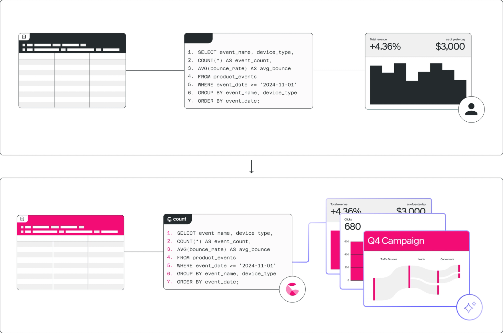What sets the Count agent apart isn’t the models we use (that’s a discussion for another day), it’s how the agent gives bothhumans and AI models better tools to work with data.