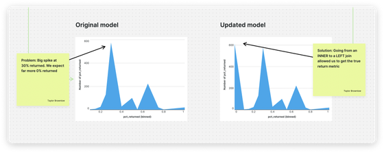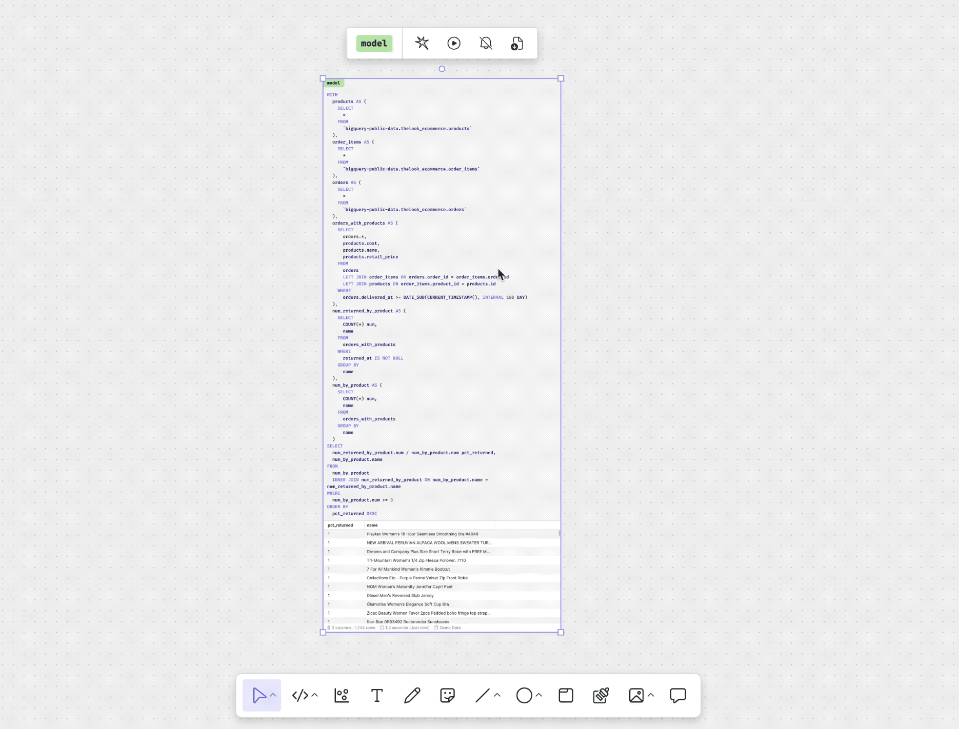 If you use dbt for your data modeling, exploding cells allow you to quickly explore your models, uncover bugs faster, and communicate suggested changes to your team more effectively.